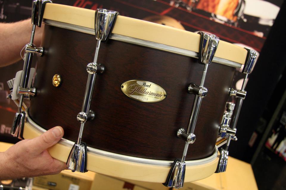 Pearl‘s booth was packed to the hilt with mouth-watering gear, including the subtly stunning Reference Pure you see up front. The next photos are of the company’s beautiful Philharmonic snare. Tuxedo not included.