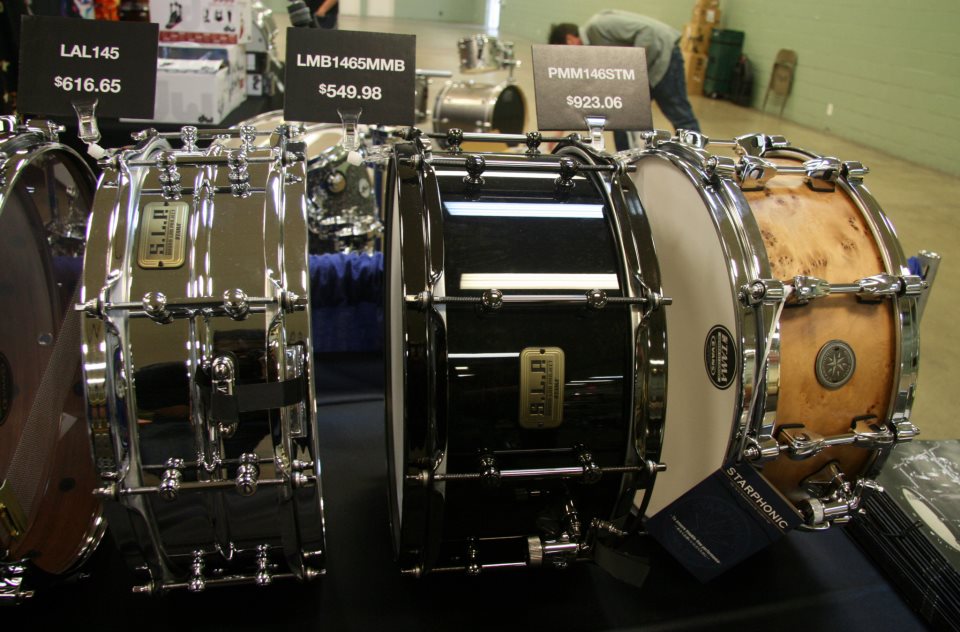 Tama had lots of great looking gear, but this limited edition Birch/Bubinga kit and their array of snare drums were impossible to ignore. Drool away.