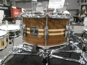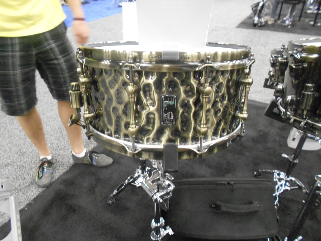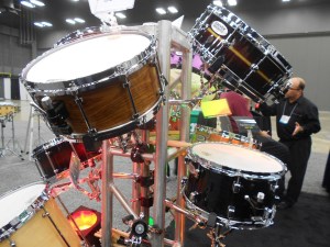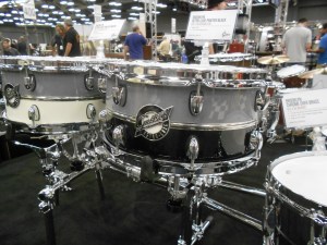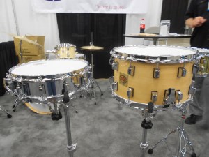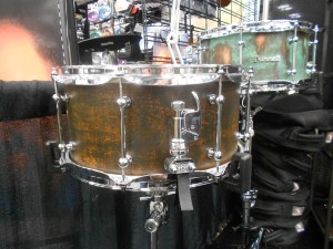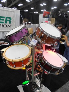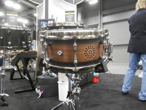I got to check out a couple of really stunning snare drums from a young company called Acoutin. They specialize in hybrid shells with modular wood edges (the wood component of each drum can be exchanged for a different variety). The modular aspect was really intriguing, but the real star here was the sound. The drums sounded INCREDIBLE. I must have stopped by this booth fifteen times in the two days I was at the show. I only got to photograph a couple, because by the time I came back with a camera, most of the drums had been sold. Can’t wait to see more from this company.