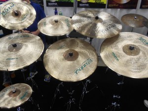 This is a picture of Istanbul Mehmet‘s new Negro series, designed with Horacio ‘el Negro’ Hernandez. Man, were these cymbals beautiful. I had to force myself to walk away. The ride on the far right was something else. Really, really nice.