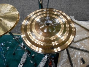 The ever-inspiring Matt Nolan Custom Cymbals booth. The hats pictured first have a titanium bottom. Super trashy, dark and punchy pairing. Awesome.