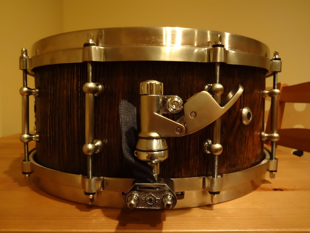 Next, the single-ply, coated, Evans batter head and 16 strand Puresound wires gave the drum a professional sound with no need to tinker. It drives me insane when builders use cheap wires on drums of this quality, so I was very pleased to see the even, crisp Puresounds in place.