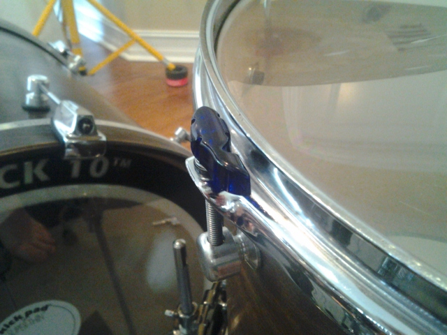 I have a 14” floor tom that I like to keep at a very low tuning. Unfortunately, that means it’s prone to speedy back-out, and a good bit of rod rattle. That drives me nuts. Well, I should say it used to drive me nuts. Now it doesn’t because a couple of tuner fish popped on the offending rods solved the problem in like two seconds. Again, beautiful.