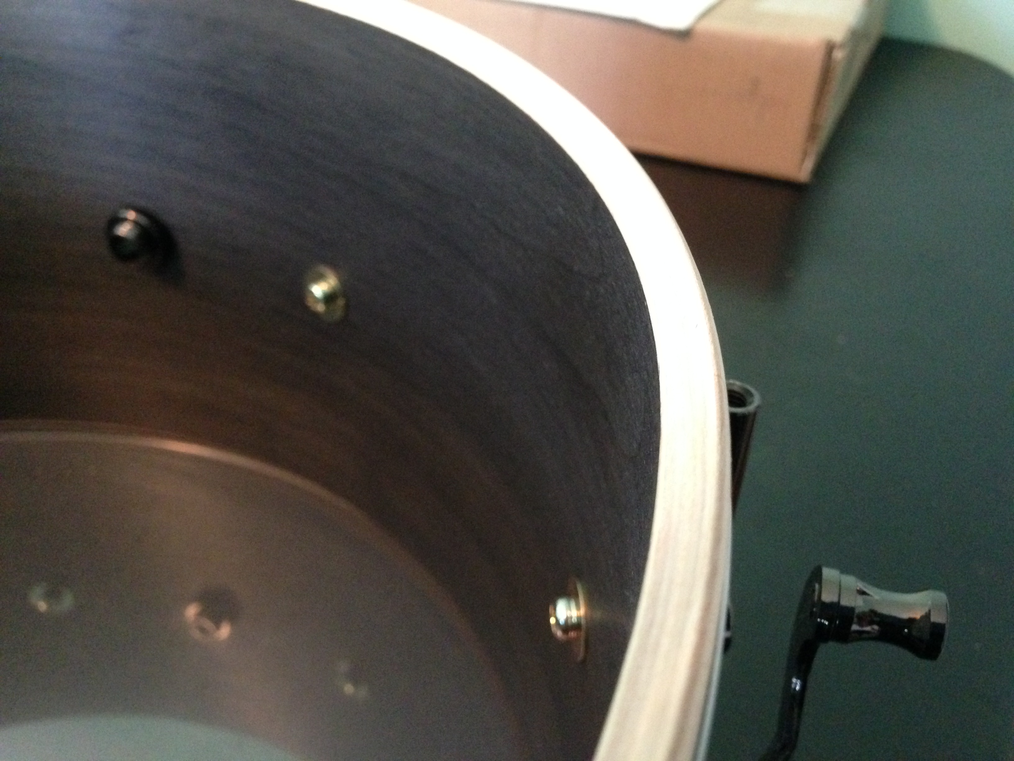 Anyway, it wasn’t the snare’s looks that surprised me. It was the sound. The Eto had come to my house straight from the Chicago Drum Show, and was still sporting it’s slightly-higher-than-medium tension (essentially for cutting through trade show noise). After a couple of quick hits, I felt confident I was playing an all-Birch drum. It had all the cutting attack and sweet highs of Birch, and was balanced by a very focused bottom end. I assumed the shell’s deeper core note was the result of its depth and ply structure rather than anything else. It was full and complex; warm, but not overly so.