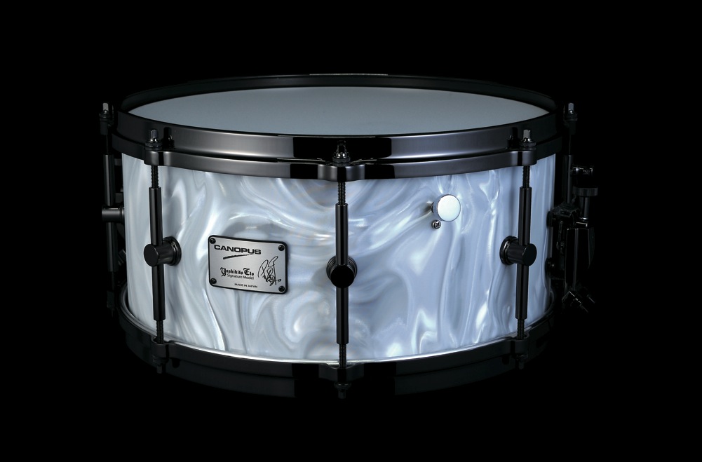 “In order to suit the eclectic playing style of drummer, Yoshihito Eto, his signature snare drum needed the capacity to shine in a wide variety of musical situations – from Jazz to Pop and Hard rock. It needed to be a true “all-rounder”, but at the same time it needed to reflect Eto’s playing personality. This was a major challenge – because it is often observed that an “all-rounder” snare drum seems to lose a certain individual character in order to function in all musical situations. Canopus produced many prototypes of this model – in search of the perfect combination of sensitivity, power, “clean” tone, and “complex” sound. We have met the challenge and realised this ideal sound.”